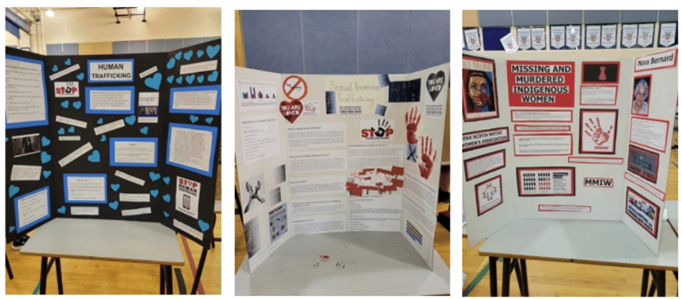 Testimony from a school administrator – “I was contacted that (presentation) day by teachers to say how great it was! The students were very impacted by it. Each year, our Grade 8 students participate in an Advocacy Fair, which resembles a science fair project on a trifold board, but with a focus on researching social issues. Today is the fair, and there are at least a dozen projects on Human Trafficking. I asked one teacher about it and she said they started working on their projects the day after you were in, and in her two classes alone, there are 7 projects on the topic. That speaks volumes! Thank you for coming in:) We’d love to have to back again next year. |