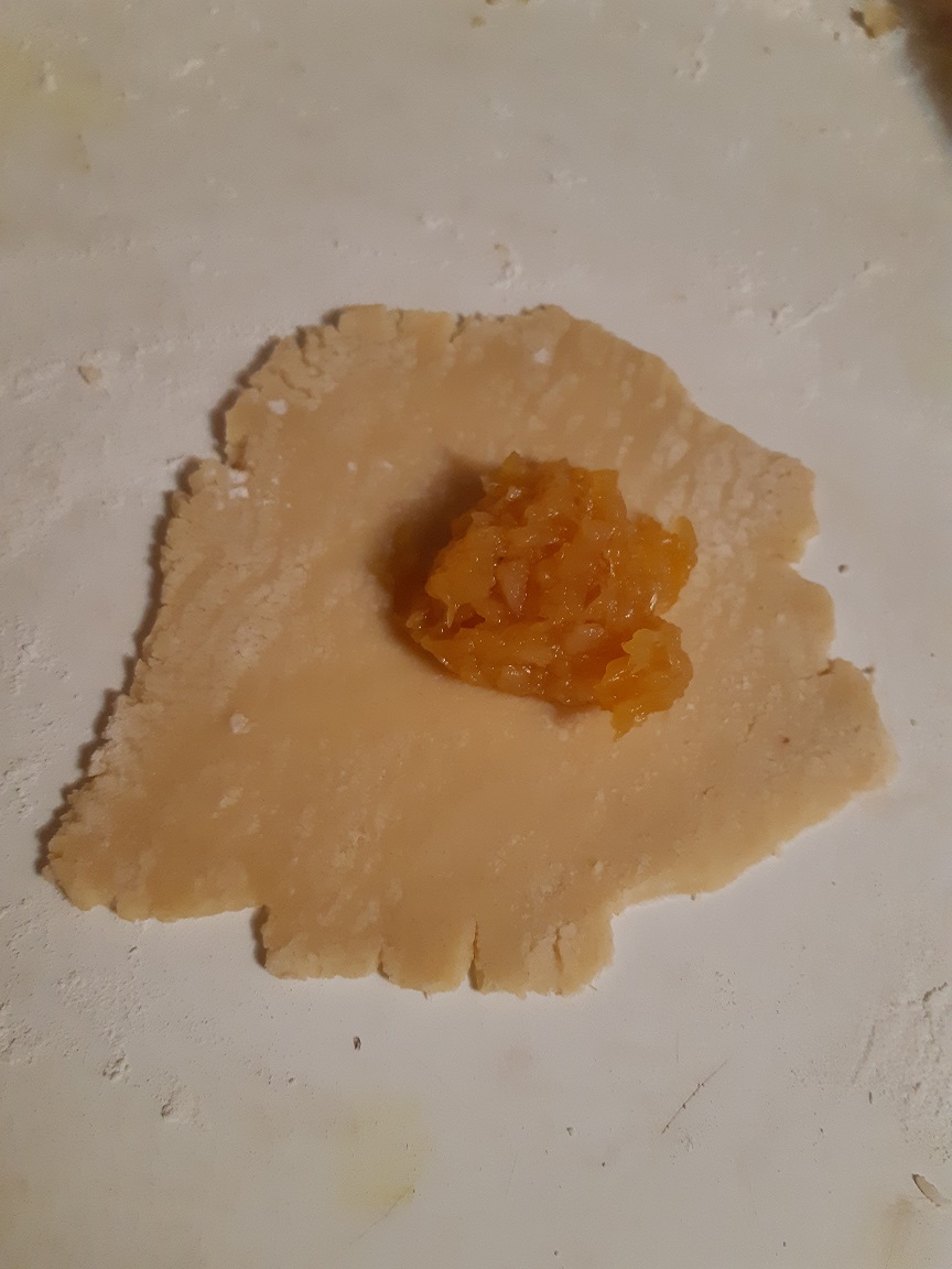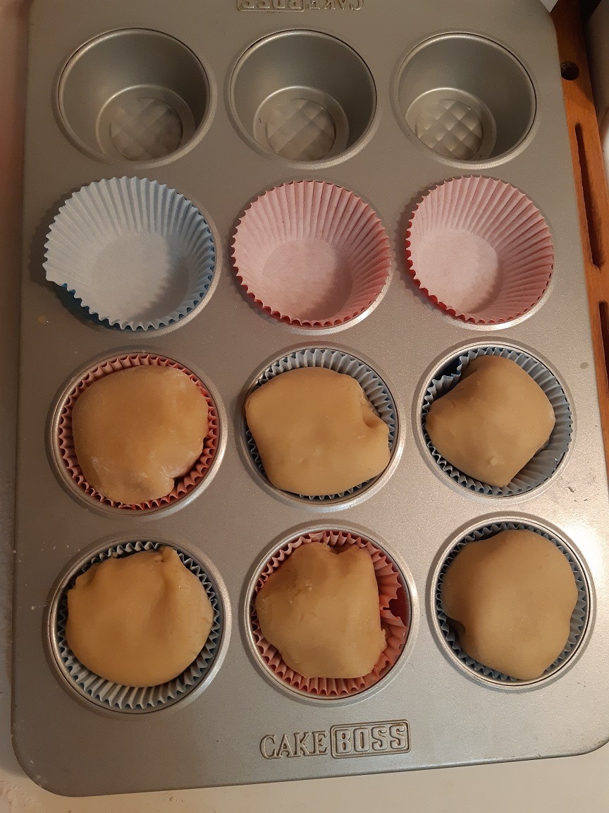 Preheat oven to 375°F. Cut dough into 12 equal pieces. On a floured work surface, roll each piece into a rounded square approximately 10 cm wide. Place some pineapple sauce on each square and fold the dough up around the pineapple to form a ball. Place in a muffin pan lined with muffin papers. Bake for about 20 min or until golden. Let cool.
